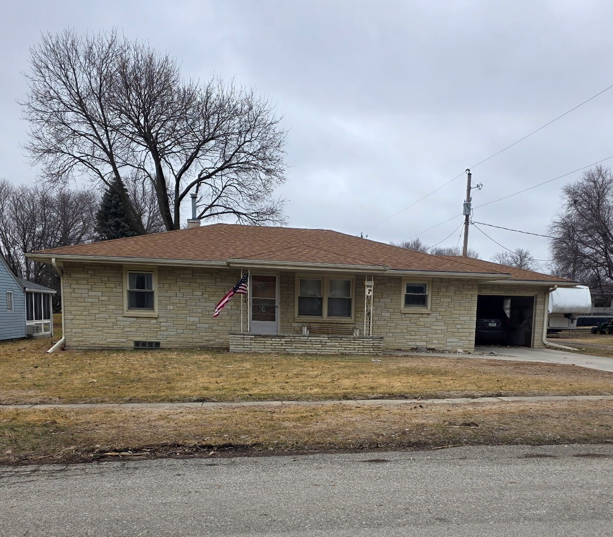 Discover the potential of this spacious home with approx 1700 sq ft living space. This property offers a primary bedroom on the main floor with four additional bedrooms upstairs. Main floor laundry hookups and a back porch overlooking the large yard. There is a two stall attached garage, plus an added tool shed on the property. Conveniently located just minutes from Hwy 20 , I35, and Iowa Falls. This property is a fixer-upper, with immense potential- make it your own!